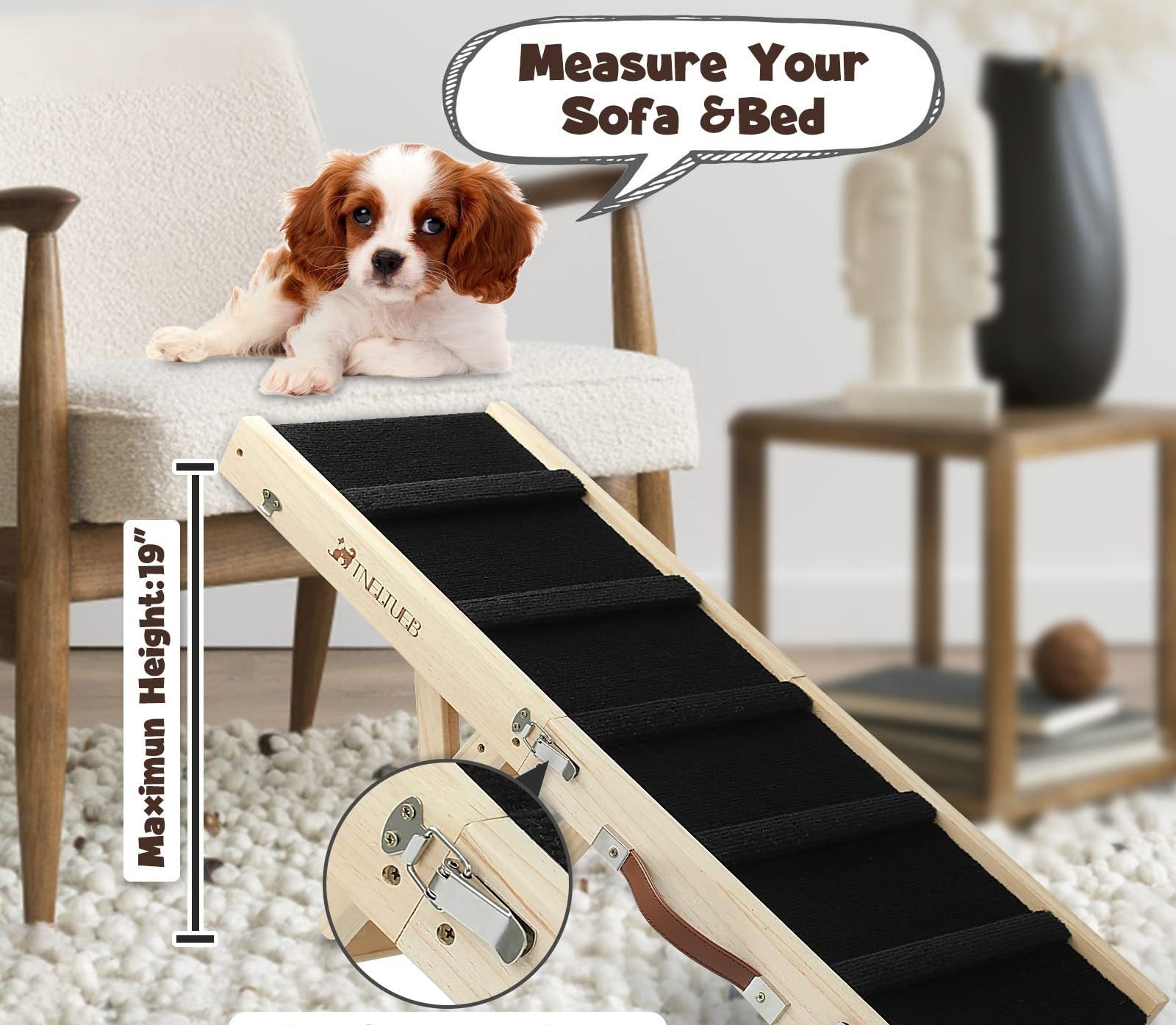 Wooden Adjustable Pet Dog Ladder Foldable Portable Non-slip Ramp