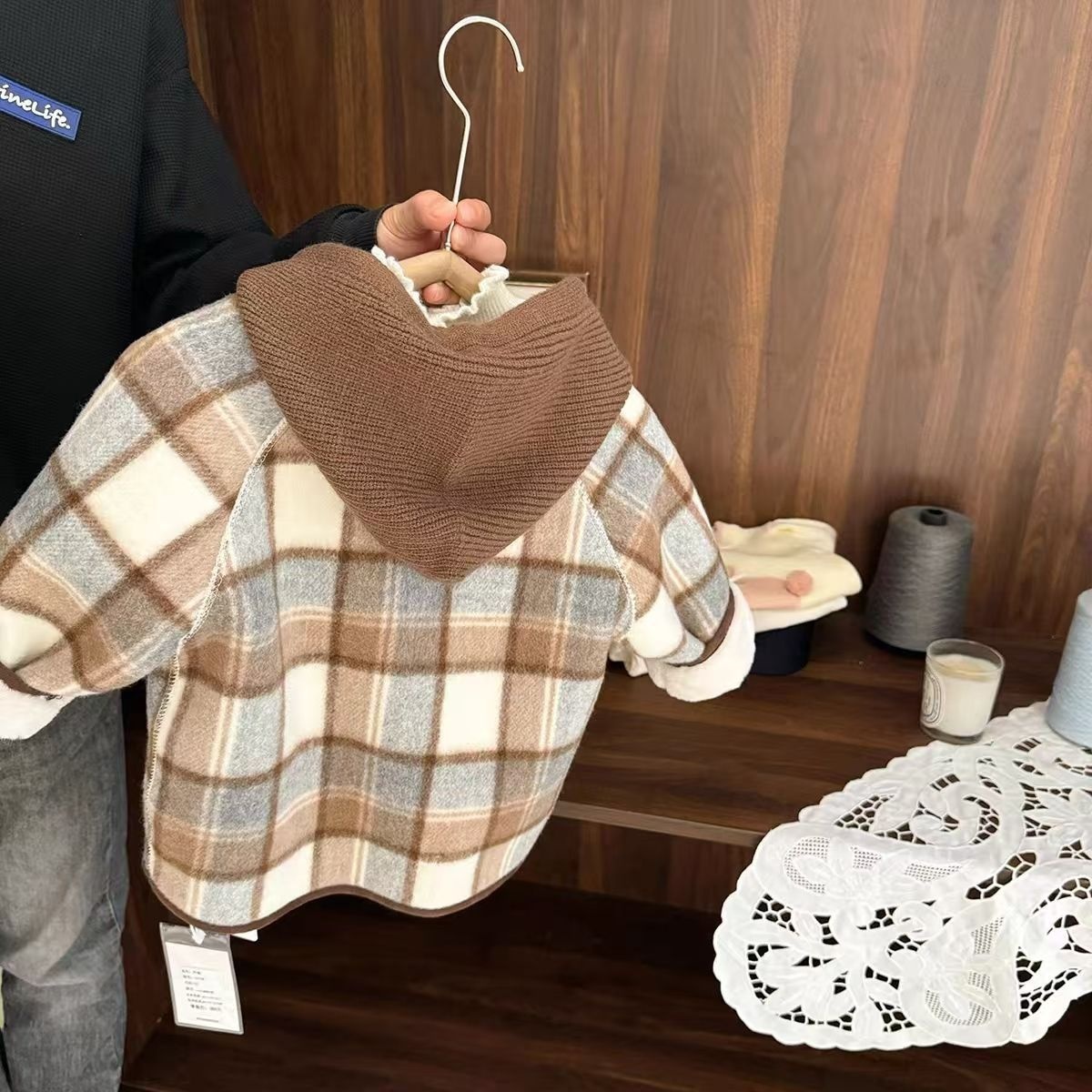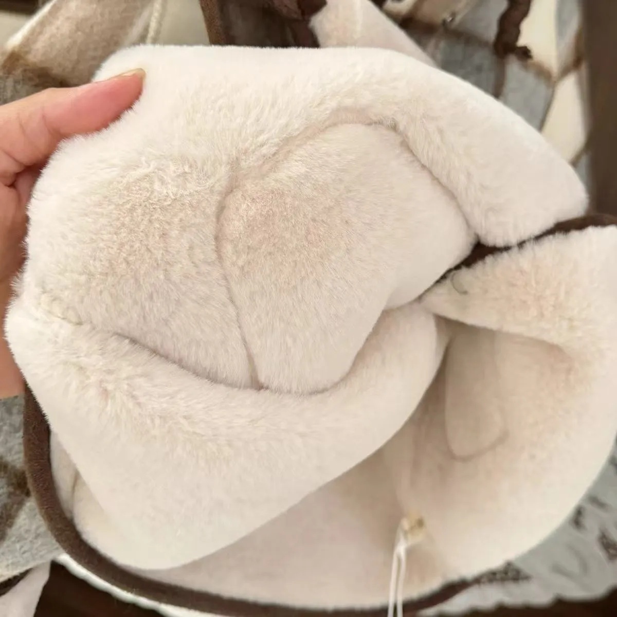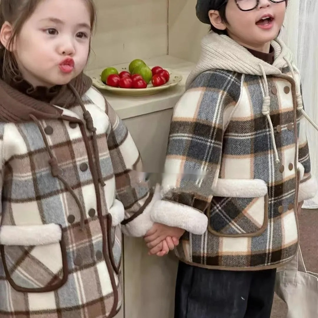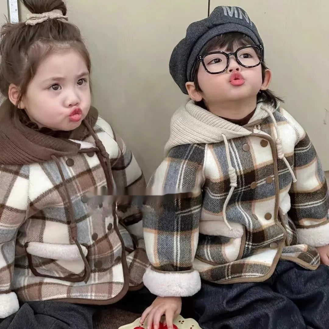 Wool Coat Fleece-lined Integrated Fleece Street-styled Plaid Winter Clothing